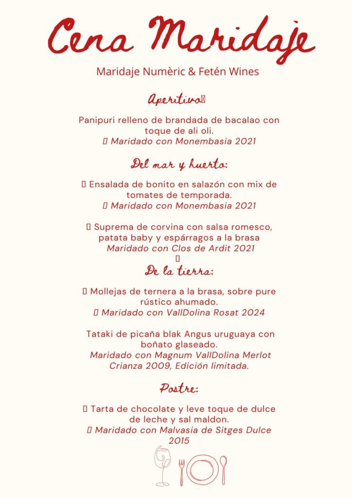 PRÓXIMO JUEVES 2 DE OCTUBRE CENA MARIDAJE EN NUMÉRIC SITGES - ÚLTIMAS 8 PLAZAS